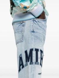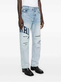 LIGHT BLUE COTTON WASHED DENIM WHISKERING EFFECT AT THE THIGHS DISTRESSED EFFECT RIPPED DETAILING AT THE LEGS EMBROIDERED LOGO TO THE SIDE LOGO PATCH TO THE REAR SILVER-TONE LOGO PLAQUE MID-RISE BELT LOOPS BUTTON FLY FASTENING CLASSIC FIVE POCKETS STRAIGHT LEG