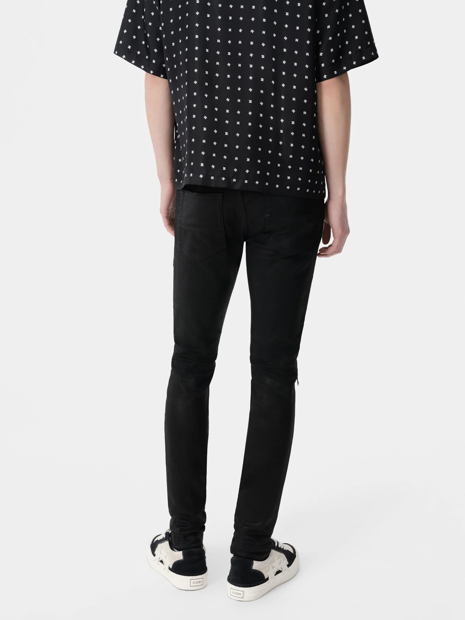 FOR AMIRI MENSWEAR, DENIM BECOMES A CANVAS FOR NOVEL FABRICATION PROCESSES. THE WAX MX1 JEAN IS DESIGNED IN ITALIAN STRETCH DENIM, HAND-DISTRESSED, AND REPAIRED WITH PLEATED LEATHER. CORE COLLECTION MADE IN USA 92% COTTON, 6% ELASTOMULTIESTER, 2% ELASTANE, CONTRAST: 100% OVINE LEATHER THIS GARMENT HAS UNDERGONE A SPECIAL PROCESS WHICH RESULTS IN INTENTIONAL VARIATIONS OF SHADING AND COLOR, AND ADD TO THE PIECE'S UNIQUE CHARACTERISTICS. THIS MAY LEAD TO BLEEDING OR DYE TRANSFER. PLEASE USE CAUTION WHEN WASHING OR DRY-CLEANING THIS ITEM. STYLE:AMDNSY1113-002