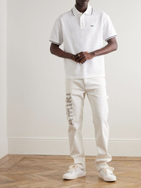 AMIRI’s polo shirt is embroidered with the label’s moniker in contrasting threads to match the striped tipping. It’s cut from cotton-pique and fastens with tonal buttons. Wear yours with the label’s distressed jeans. Size & Fit - Fits true to size. Take your normal size - Designed for a regular fit - Mid-weight, slightly stretchy fabric - Model is shown wearing a M - Model measures: chest 38"/ 96cm, height 6'2"/ 188cm Details & Care - White and black cotton-pique - Button fastenings - 100% cotton - Dry clean