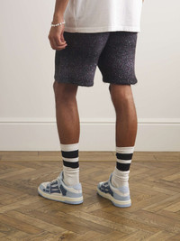 AMIRI's shorts have been made in the USA from a combination of threads to create a classic mélange finish. They have a comfortable, wide-leg silhouette that nods to traditional Bermuda styles and are finished with a hand-stitched moniker on the hem. Size & Fit - Model wears a size larger to achieve a looser fit - Wide leg, low-crotch style - Drawstring at the waist - Weighted knit - Model is shown wearing a M - Model measures: waist size 30, height 6'0"/ 183cm Details & Care - Multicoloured melangé cotton, polyamide, alpaca and polyester-blend - 39% cotton, 28% polyamide, 26% alpaca, 7% polyester; lining: 100% cotton - Hand wash