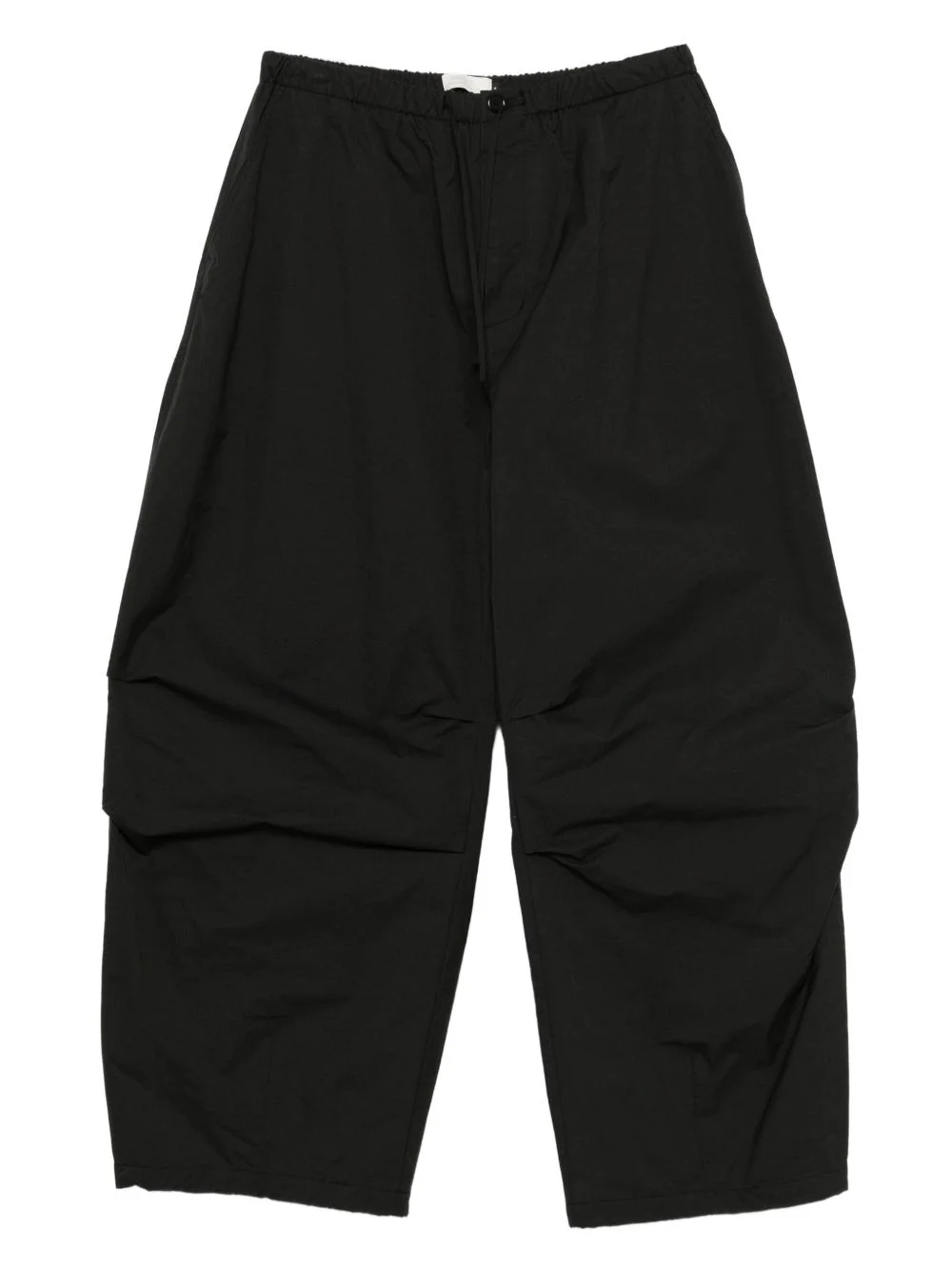 drawstring trousers Highlights - Black - Elasticated waistband - Side flap pocket - Drawstring detail - Button closure - Rear welt pocket Imported Composition Lining: Polyester 100% Outer: Cotton 51%, Nylon 49% Washing instructions Read Manufacturer Guidelines