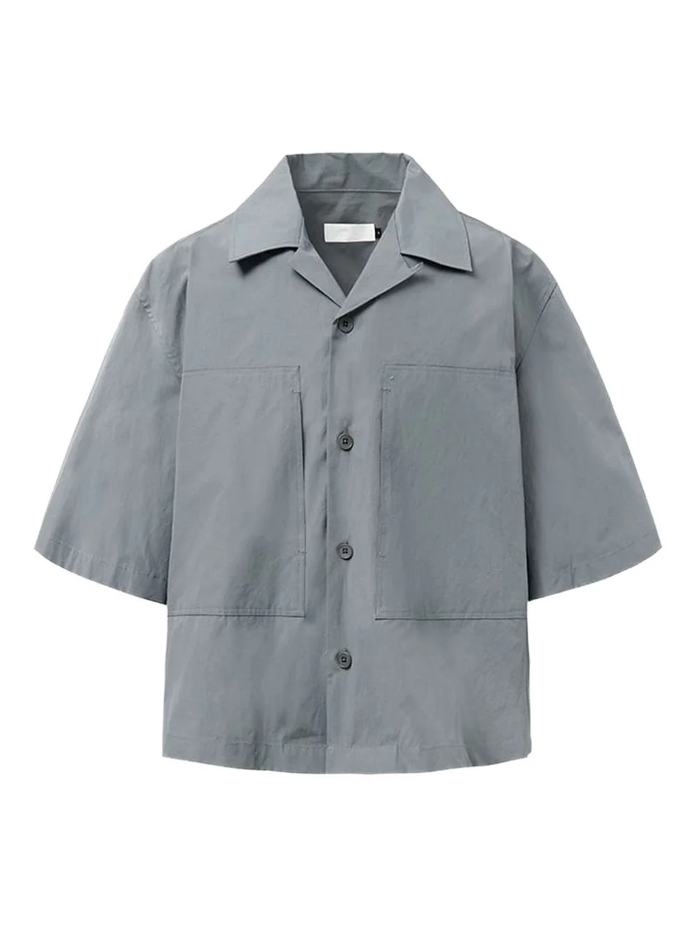 patch-pocket shirt Highlights - Medium grey - Front button fastening - Camp collar - Short sleeves - Straight hem Imported Composition Polyester 45%, Cotton 43%, Nylon 12% Washing instructions Read Manufacturer Guidelines