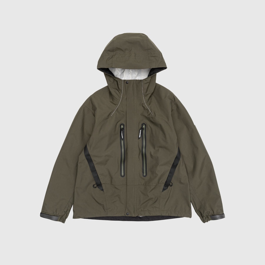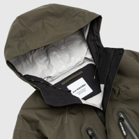 - 5744111104 181 - Dark Khaki - 100% Nylon - 2.5L durable water-repellent fabric - Front hidden two-way zip closure - Pullover hood with adjustable drawcord - Two front pockets with zipper closure and reflective trim - Two side pockets with zipper closure - Underarm ventilation with zipper closure - Adjustable velcro fastening at cuffs - Adjustable drawstring at the hem - Reflective stitching - Reflective branding
