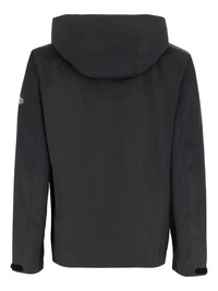 adjustable-hood logo-detail jacket Highlights - Black - High collar - Adjustable hood drawstring - Elasticated cuffs - Front zip button closure - Two vertical chest pockets zip - Logo detail sleeve Imported Composition Nylon 100% Washing instructions Read Manufacturer Guidelines
