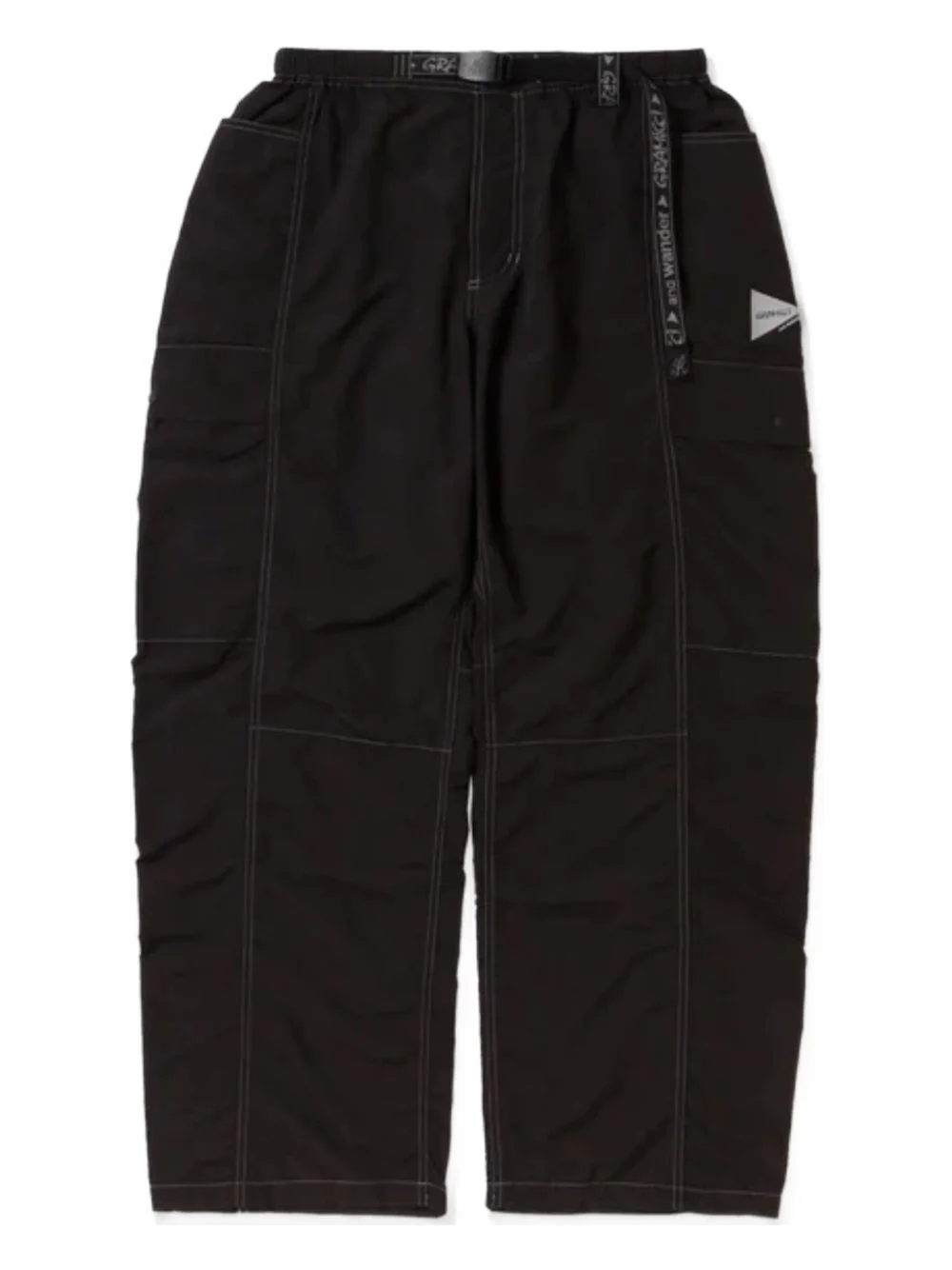 belted panelled trousers Highlights - Black - Panelled design - Belt - Side cargo pocket - Topstitching - Elasticated waistband Imported Composition Nylon 100% Washing instructions Read Manufacturer Guidelines