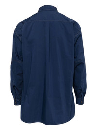 PRUSSIAN BLUE COTTON BLEND CARABINER ATTACHMENT APPLIQUE LOGO CONTRAST STITCHING CLASSIC COLLAR FRONT PRESS-STUD FASTENING DROP SHOULDER LONG SLEEVES BUTTONED CUFFS MULTIPLE PATCH POCKETS CURVED HEM