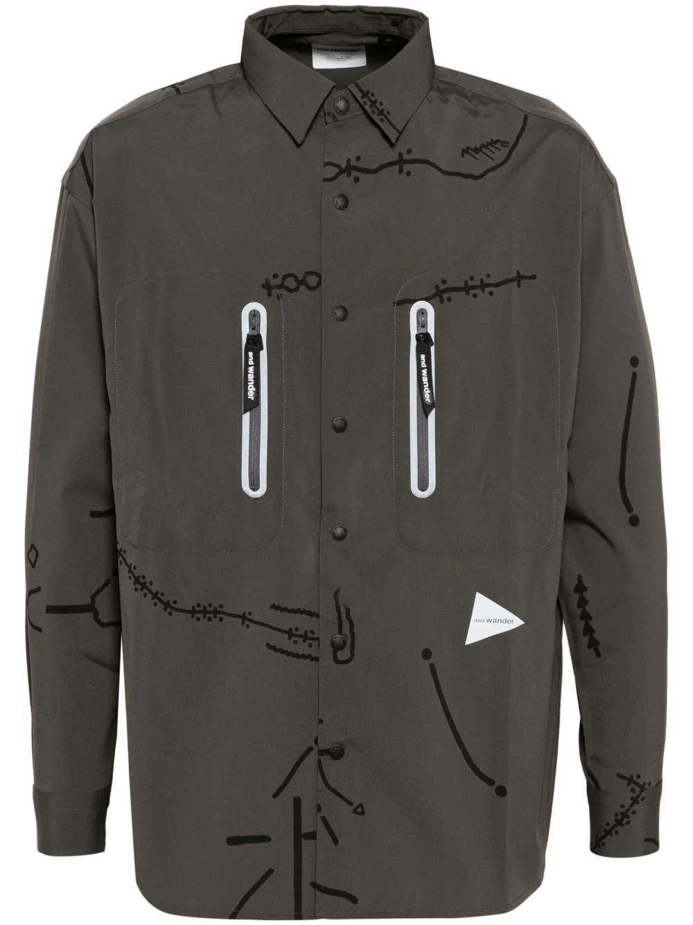 Daijiro OHARA map key print shirt Highlights - Grey - Front press-stud fastening - Classic collar - Long sleeves - Zip-fastening chest pocket Imported Composition Polyester 100%