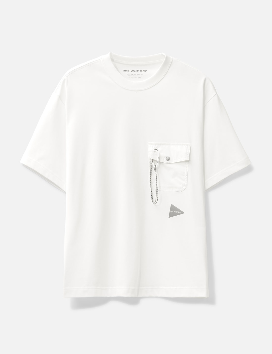 - and wander - Pocket T-shirt - Made of a hybrid jersey material with cotton on the surface and Coolmax on the inside - Short sleeves - Carabiner pocket on the chest - Reflective logo - Straight hem - Color: White - Material: 51% Polyester (Coolmax),49% Cotton; 70% Cotton, 30% Polyester - See more T-Shirts and Clothing SIZING - Model wears size M - Model measures: Height 185cm, Chest 34”/87cm, Waist 27.5”/70cm, Hip 35”/89cm