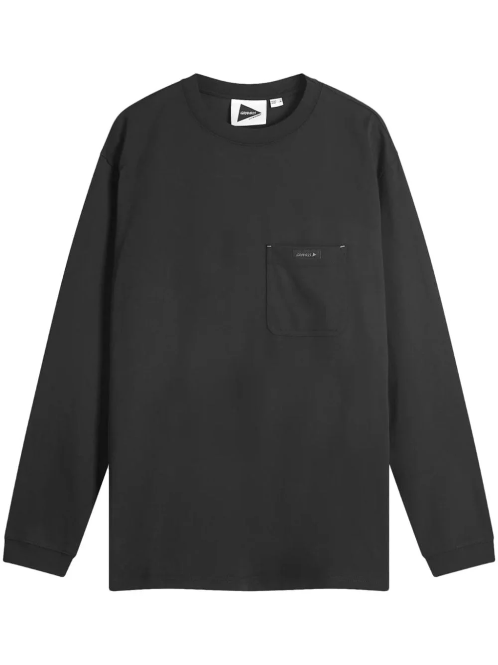 x Gramicci logo-print T-shirt Highlights - Black/grey - Cotton - Jersey texture - Crew neck - Drop shoulder - Long sleeves - Chest patch pocket - Mini logo tag - Logo print to the rear - Straight hem Imported Composition Cotton 65%, Polyester 35%