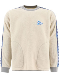 x Maison Kitsune fleece sweatshirt Highlights - Cream white/blue - Fleece texture - Signature fox motif at the chest - Fox-motif side stripe detailing - Crew neck - Long sleeves - Ribbed cuffs - Side patch pockets - Straight hem Imported Composition Polyester 100%