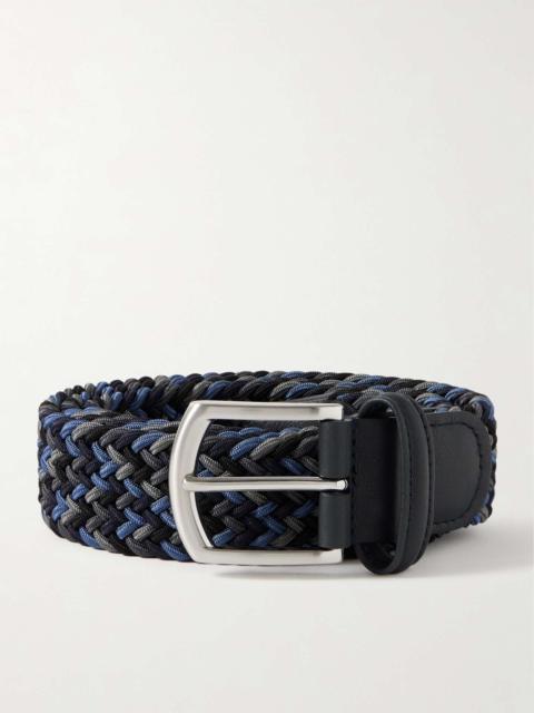 3.5cm Leather-Trimmed Woven Elastic Belt