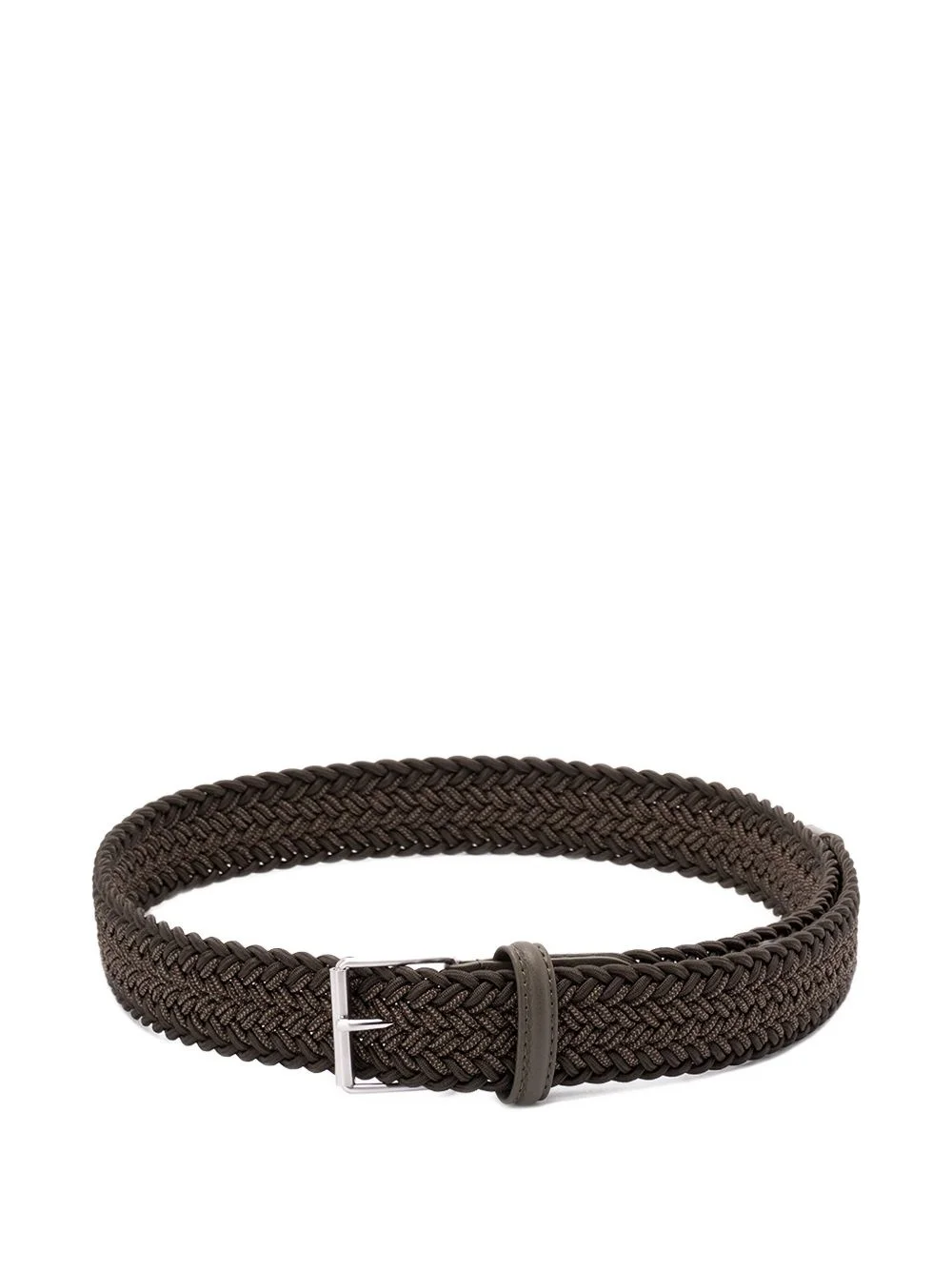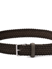 braided belt Highlights - Dark brown - Woven design - Silver-tone buckle - Adjustable fit - Leather keeper Made in Italy Composition Viscose 74%, Elastane 26%