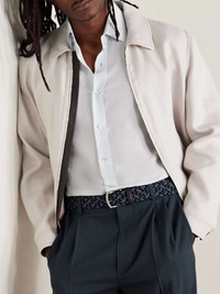 3.5cm Leather-Trimmed Woven Elastic Belt