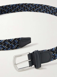 Woven elastic belts are great to travel with, since they won't crease or lose their shape in transit. Easy to wear with a smart-casual outfit, this Anderson's style has been meticulously crafted in Italy with durable leather trims and a polished silver-tone buckle. Size & Fit - Fits true to size. Take your normal size - Model wears a 90 - Model measures: waist size 32 Details & Care - Black, tonal-grey and blue elastic, black leather - Silver-tone buckle fastening