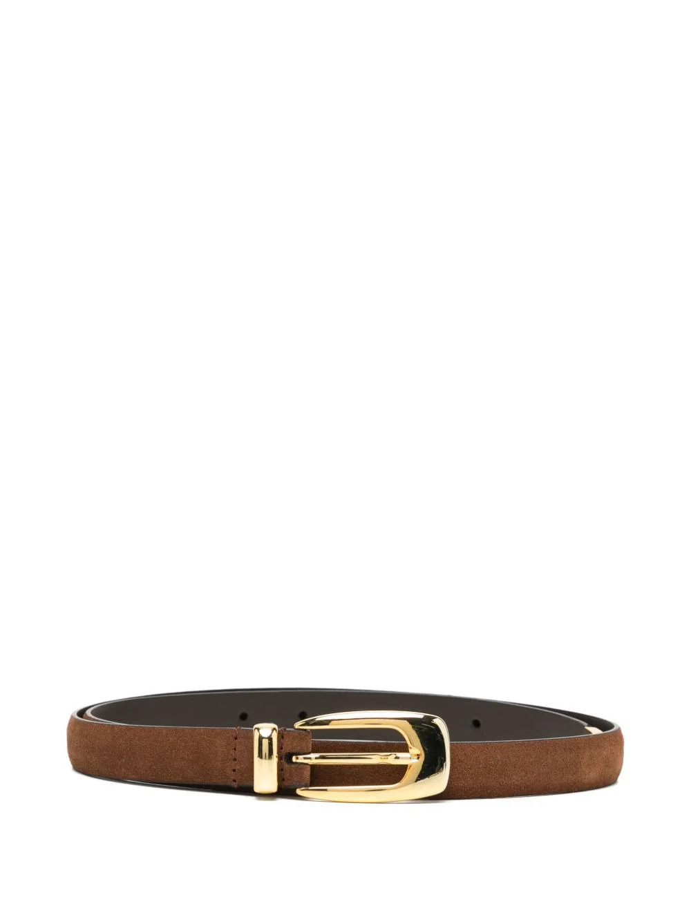 keeper belt Highlights - Camel brown - Gold-tone buckle fastening - Leather - Punched holes Made in Italy Composition Calf Leather 100% SIZE & FIT Measurement Maximum Length 37.4 in(95 cm) Minimum Length 33.46 in(85 cm) TOTAL LENGTH 41.33 in(105 cm) WIDTH 0.78 in(2 cm)