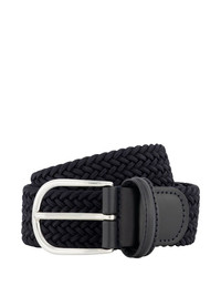 leather belt Highlights - Navy blue - Front buckle fastening - Adjustable fit - Silver-tone hardware Made in Italy Composition Calf Leather 100%, Fabric 100%