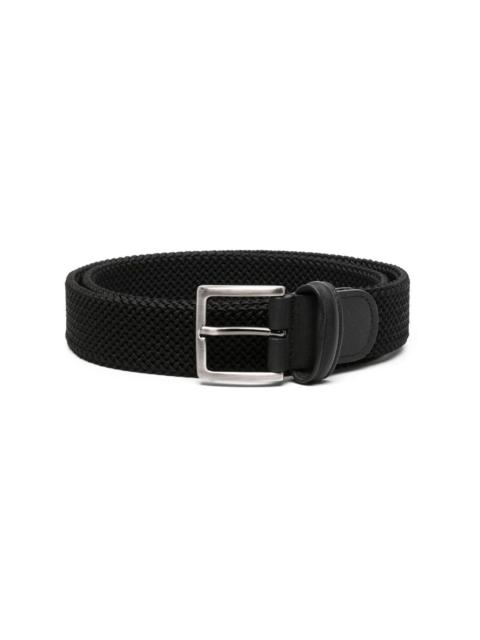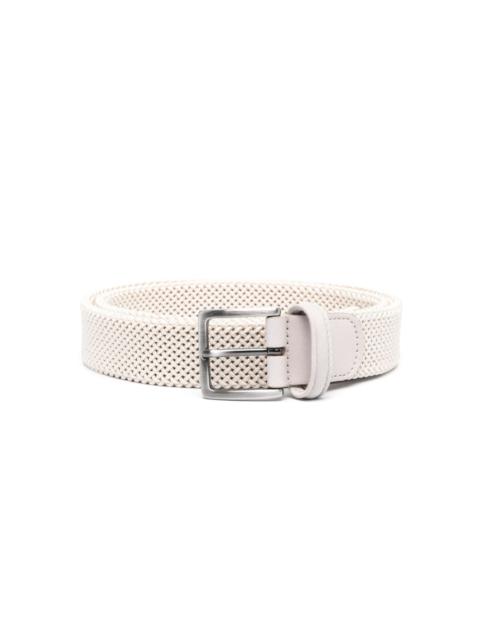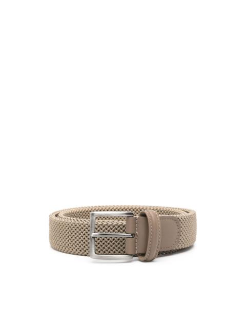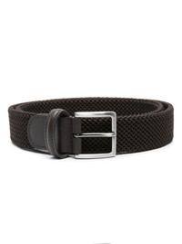elastic woven belt Highlights - Cedar brown - Interwoven design - Stretch-design - Buckle fastening - Adjustable fit Made in Italy Composition Leather 100%, Viscose 100% SIZE & FIT Measurement TOTAL LENGTH 43.3 in(110 cm) WIDTH 1.37 in(3.5 cm)
