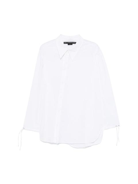 asymmetric-design shirt Highlights - White - Cotton blend - Poplin texture - Off-centre front button fastening - Asymmetric design - Pointed flat collar - Long sleeves - Drawstring cuffs - Rear slit - Asymmetric hem Imported Composition Cotton 60%, Nylon 36%, Polyurethane 4% SIZE & FIT FittingInformation Designed to be unstructured, offering a loose fit throughout Made from a midweight non-stretch fabric