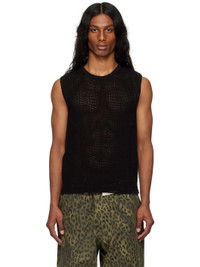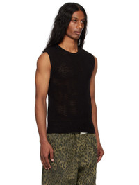 Open-knit acrylic- and cotton-blend tank top. Distressing throughout. · Rib-knit crewneck and armscyes · Pinched side seams · Webbing strap with rivets at back collar Supplier color: Black 35% acrylic, 34% cotton, 31% polyester. Made in South Korea 251375M214001