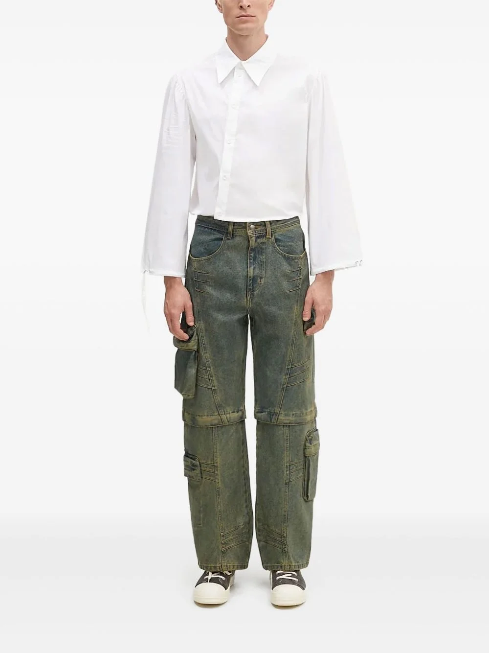 cargo jeans Highlights - Green - Cargo pockets - Faded wash - Contrasting stitching Imported Composition Cotton 100% Washing instructions Hand Wash