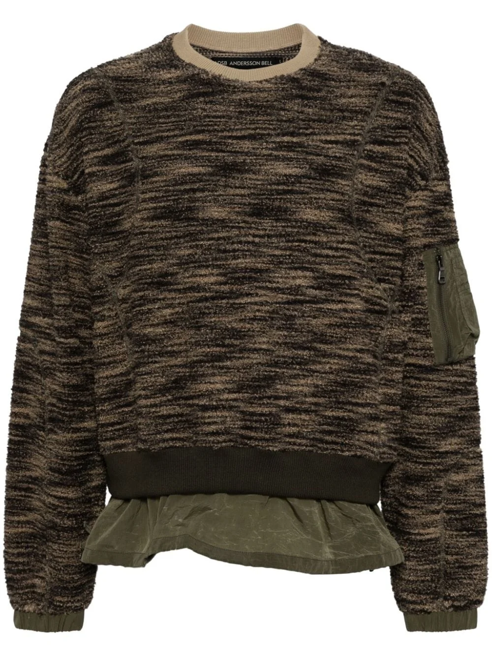 layered fleece sweater Highlights - Khaki green/brown - Fleece texture - Layered design - Panel detailing - Crew neck - Drop shoulder - Long sleeves - Sleeve zip pocket - Exposed-seam detailing - Elasticated cuffs - Ribbed hem - Flared hem - Side zip fastening - Drawstring hem Imported Composition Outer: Polyester 100% Nylon 100% SIZE & FIT Measurement CHEST 47 in(119.4 cm) SLEEVE LENGTH 22.99 in(58.4 cm) LENGTH 25.51 in(64.8 cm) WAIST 42 in(106.7 cm) Shoulder Width 23.5 in(59.7 cm)
