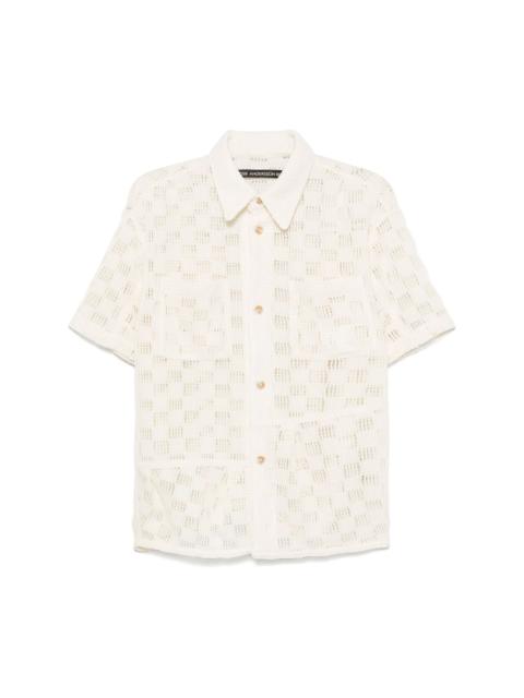 Crochet shirt Highlights - Black - Front button fastening - Short sleeves Imported Composition Polyester 100% SIZE & FIT Measurement CHEST 44.09 in(112 cm) SLEEVE LENGTH 8.66 in(22 cm) LENGTH 28.34 in(72 cm) WAIST 43.3 in(110 cm) Shoulder Width 20.47 in(52 cm) Washing instructions Read Manufacturer Guidelines