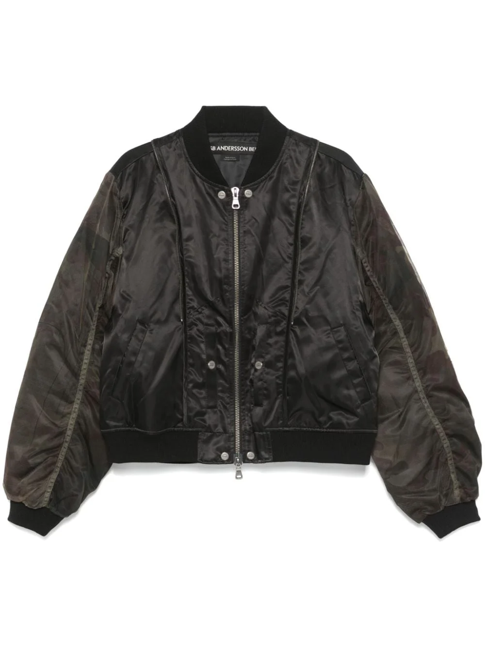 mesh-sleeve bomber jacket Highlights - Black/khaki - Panelled design - Mesh sleeves - Front zip fastening - Ribbed band collar - Decorative zip detailing - Camouflage print at the sleeves - Long sleeves - Ribbed cuffs and hem - Two side welt pockets - Two press-stud fastening side pockets - Full lining - When buying this unisex item, keep in mind that it is graded in standard men's sizing. Imported Composition Lining: Polyester 100% Outer: Polyester 100% SIZE & FIT FittingInformation Designed for a relaxed fit, this piece allows for comfort and movement when worn The ribbed hem offers a close, comfortable fit Made from a padded non-stretch fabric, giving it no natural elasticity Washing instructions Dry Clean Only