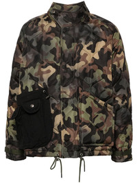 camouflage quilted jacket Highlights - Sand/multicolour - Quilted - Camouflage pattern - Logo patch to the rear - Concealed front fastening - Stand-up collar - Long raglan sleeves - Belted cuffs - Multiple cargo pockets - Rear flap pocket - Internal zip-fastening pocket - Internal adjustable straps - Full lining - Drawstring hem Imported Composition Lining: Polyester 100% Filling: Polyester 100% Outer: Polyester 100% SIZE & FIT Model measurements Height 6 ft 2 in(1.89 m) Bust/Chest 35.03 in(89 cm) Hips 34.64 in(88 cm) Waist 28.34 in(72 cm) Measurement CHEST 59.01 in(149.9 cm) SLEEVE LENGTH 25.98 in(66 cm) LENGTH 27 in(68.6 cm) WAIST 57.99 in(147.3 cm) Shoulder Width 17.99 in(45.7 cm) FittingInformation Designed for an oversized fit, offering additional room throughout The internal drawstring at the hem allows for fitted preferences Made from a padded non-stretch fabric, giving it no natural elasticity This piece fits true to size – take your usual size