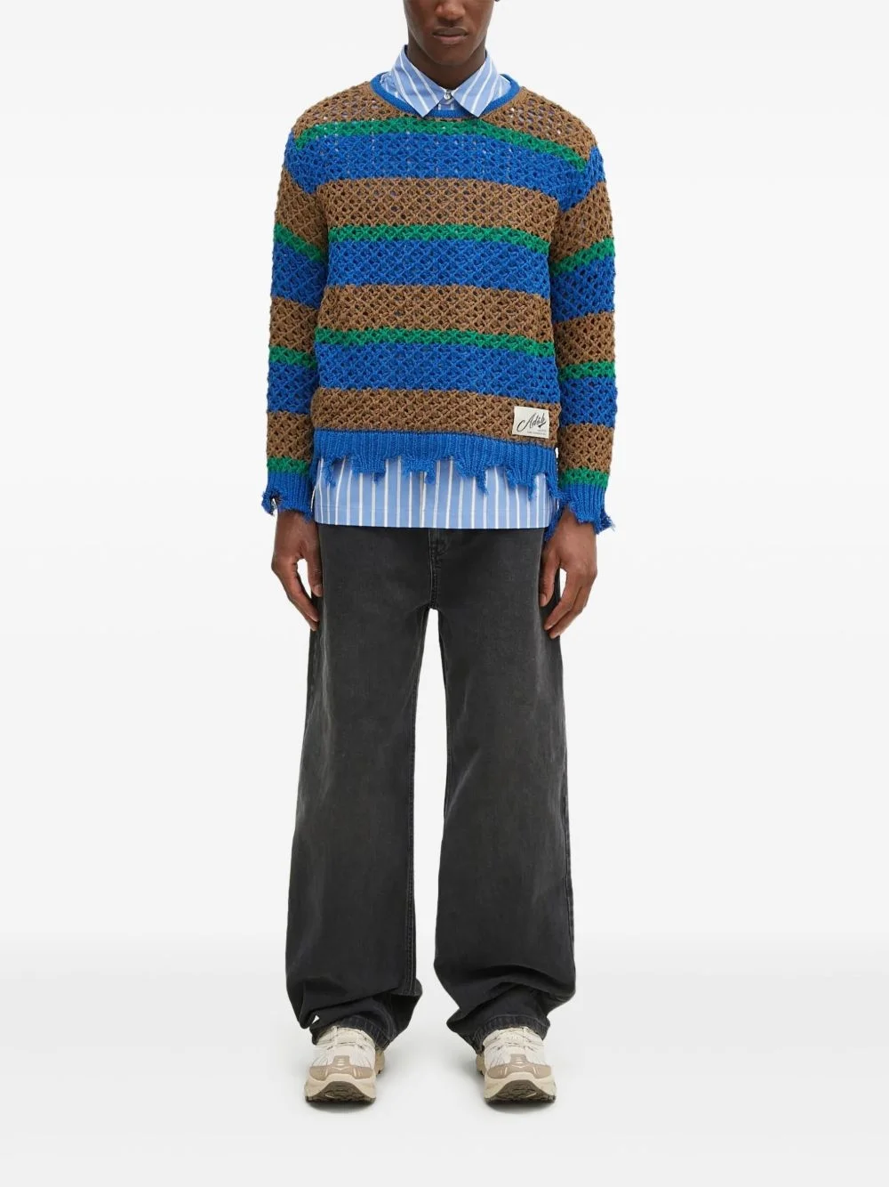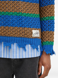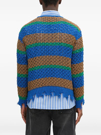 striped frayed-hem jumper Highlights - Blue - Brown stripes - Green stripes - Open knit - Frayed hem - Label applique Imported Composition Cotton 65%, Nylon 35% Washing instructions Dry Clean Only