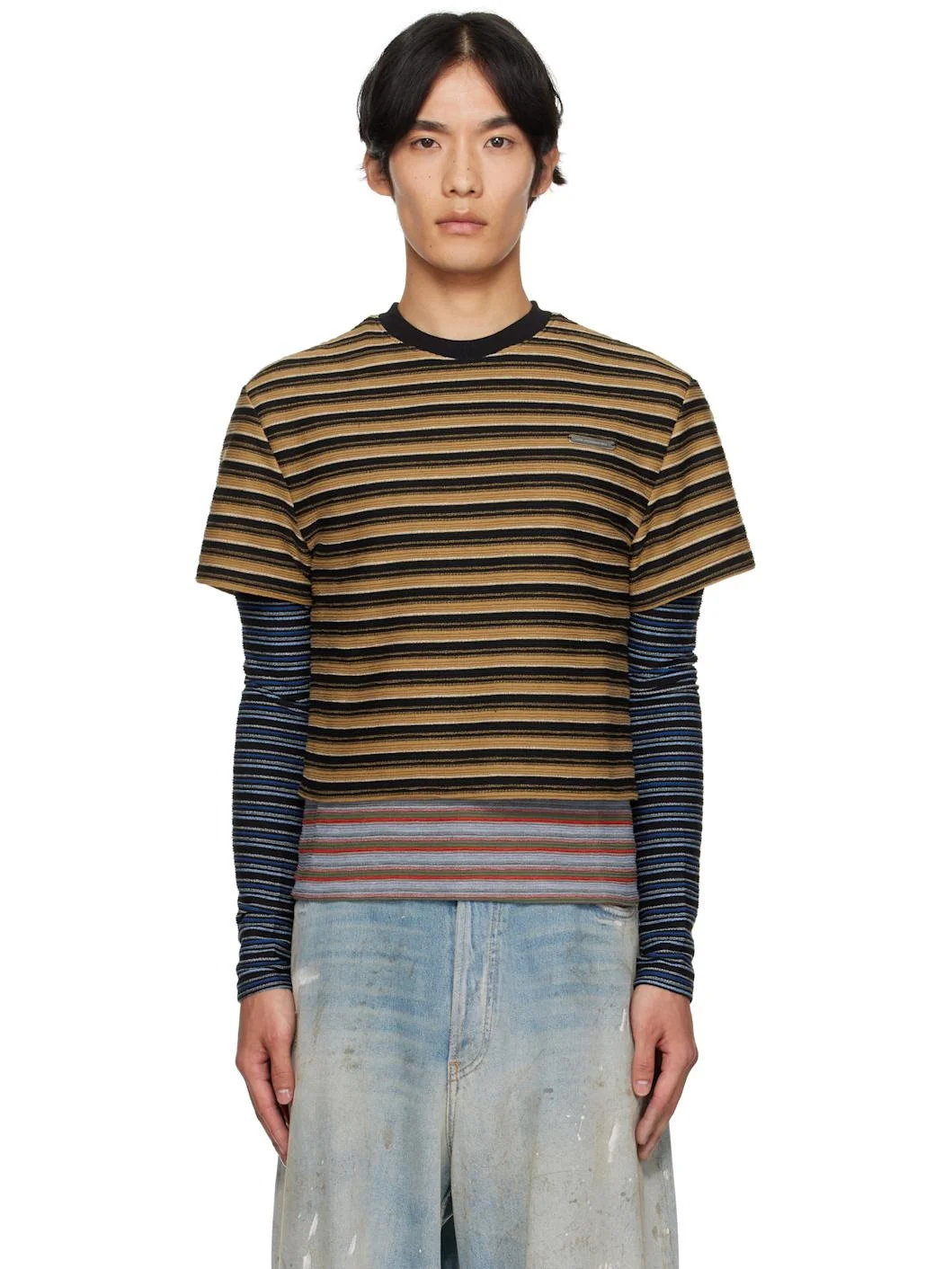 Rib-knit cotton-blend T-shirt. · Stripes throughout · Crewneck · Logo plaque at chest · Layered sleeves and hem Supplier color: Multi 60% polyester, 40% cotton. Made in South Korea 252375M213001
