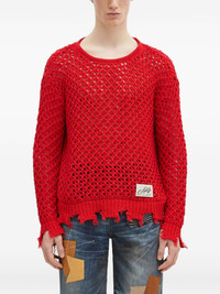 open-knit frayed sweater Highlights - Red - Open knit - Frayed edges - Long sleeves - Round neck - Logo applique Imported Composition Cotton 65%, Nylon 35% Washing instructions Hand Wash