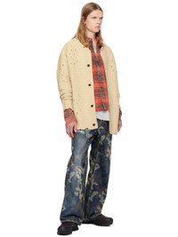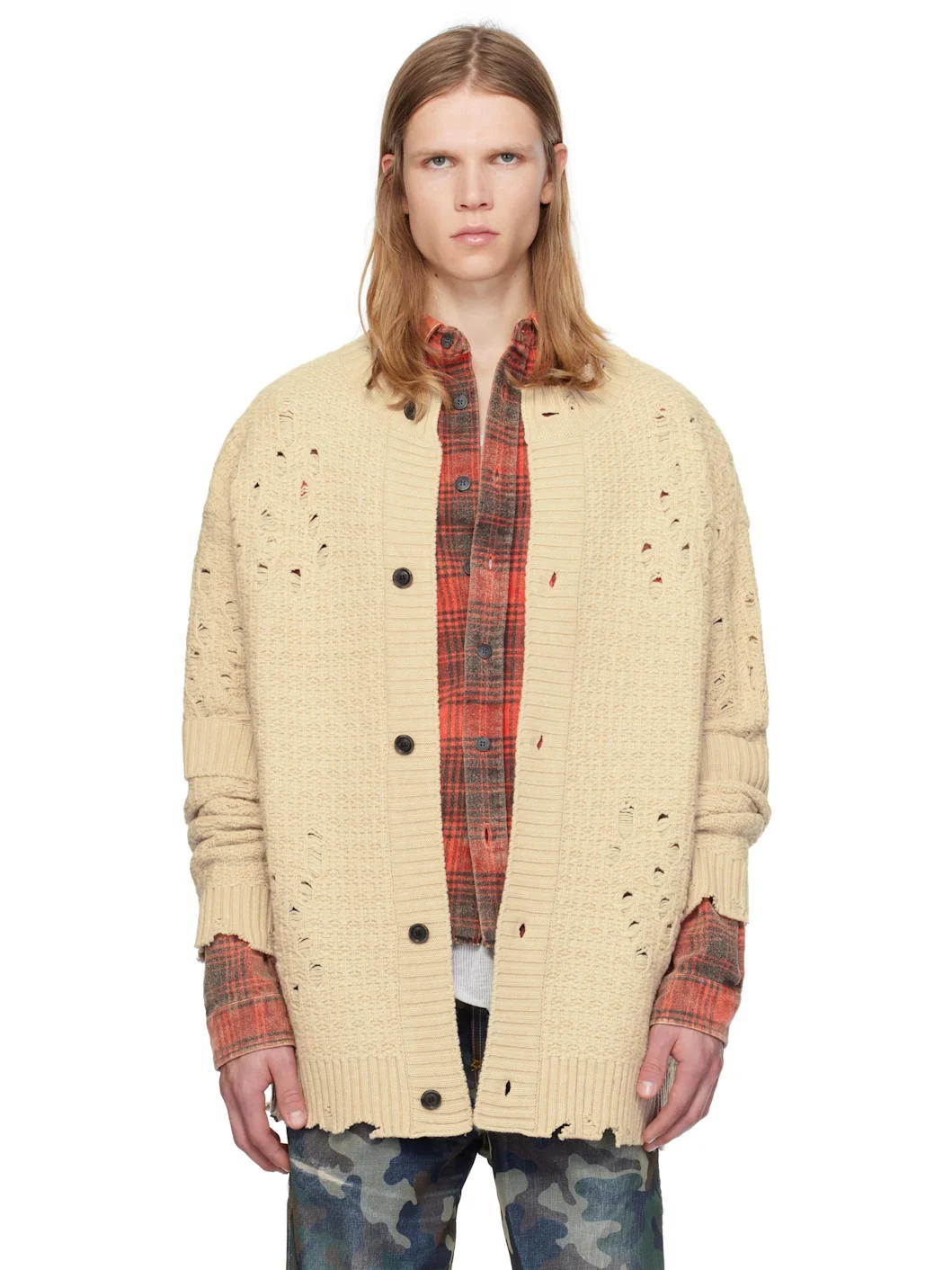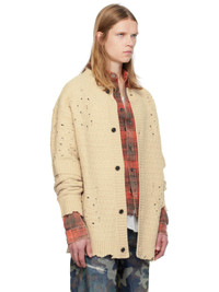 Oversized knit wool-blend cardigan. Distressing throughout. · Rib-knit crewneck, hem, and cuffs · Button closure · Rib-knit trim at placket and sleeves · Dropped shoulders · Logo-engraved horn hardware Supplier color: Ecru 60% wool, 35% nylon, 5% cashmere. Made in South Korea 242375M200001