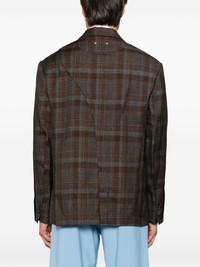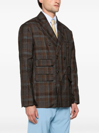 Soe-check double-breasted blazer Highlights - Coffee brown/sky blue/pastel yellow - Wool blend - Interlock twill weave - Panelled design - Soe-check pattern - Double-breasted button fastening - Peak lapels - Long sleeves - Buttoned cuffs - Layered effect - Chest welt pocket - Three front flap pockets - Italian rear vents - Full lining - Straight hem Imported Composition Outer: Wool 63%, Acetate 16%, Polyester 11%, Rayon 5%, Nylon 5% Lining: Polyester 100% SIZE & FIT Model measurements Height 6 ft 2 in(1.87 m) Bust/Chest 37.79 in(96 cm) Hips 37.79 in(96 cm) Waist 30.31 in(77 cm) FittingInformation Designed to be unstructured, offering a loose fit throughout The internal shoulder pads offer a structured shape Made from a midweight non-stretch fabric