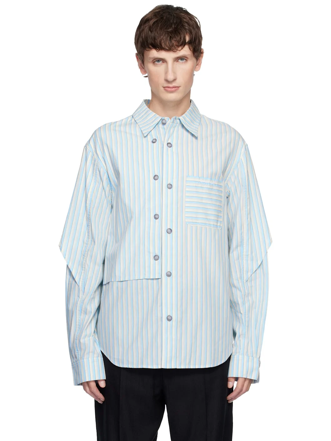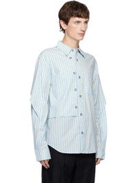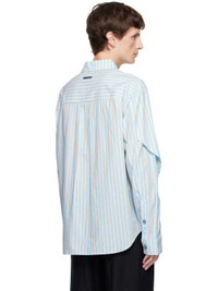 Plain-woven cotton-blend shirt. · Stripes throughout · Spread collar · Button closure · Buttoned overlay at chest · Logo-embroidered patch pocket at chest · Shirttail hem · Logo patch at back collar · Box pleat at back yoke Supplier color: Blue 63% cotton, 37% viscose. Made in South Korea 252375M192005