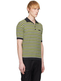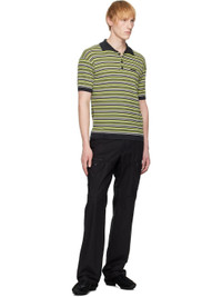 Rib-knit wool polo. Stripes throughout. · Distressing at spread collar, hem, and cuffs · Three-button placket · Logo plaque at chest Supplier color: Charcoal/Lime 100% wool. Made in South Korea 251375M212009
