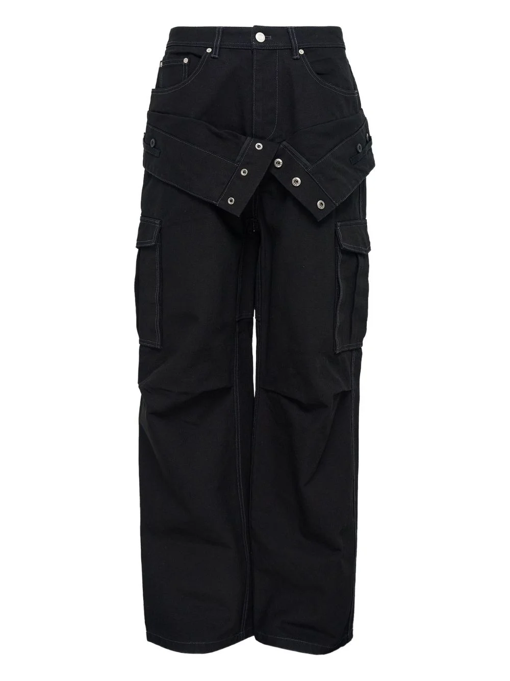 double-waist cargo jeans Highlights - Black - Concealed fly and button fastening - Belt loops - Layered design - Classic five pockets Imported Composition Cotton 100% Washing instructions Read Manufacturer Guidelines