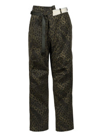 leopard-print cargo trousers Highlights - Olive green - Paper bag waist - Detachable belt - Multiple pockets - Front button fastening - Straight leg design Imported Composition Cotton 100% Washing instructions Dry Clean Only