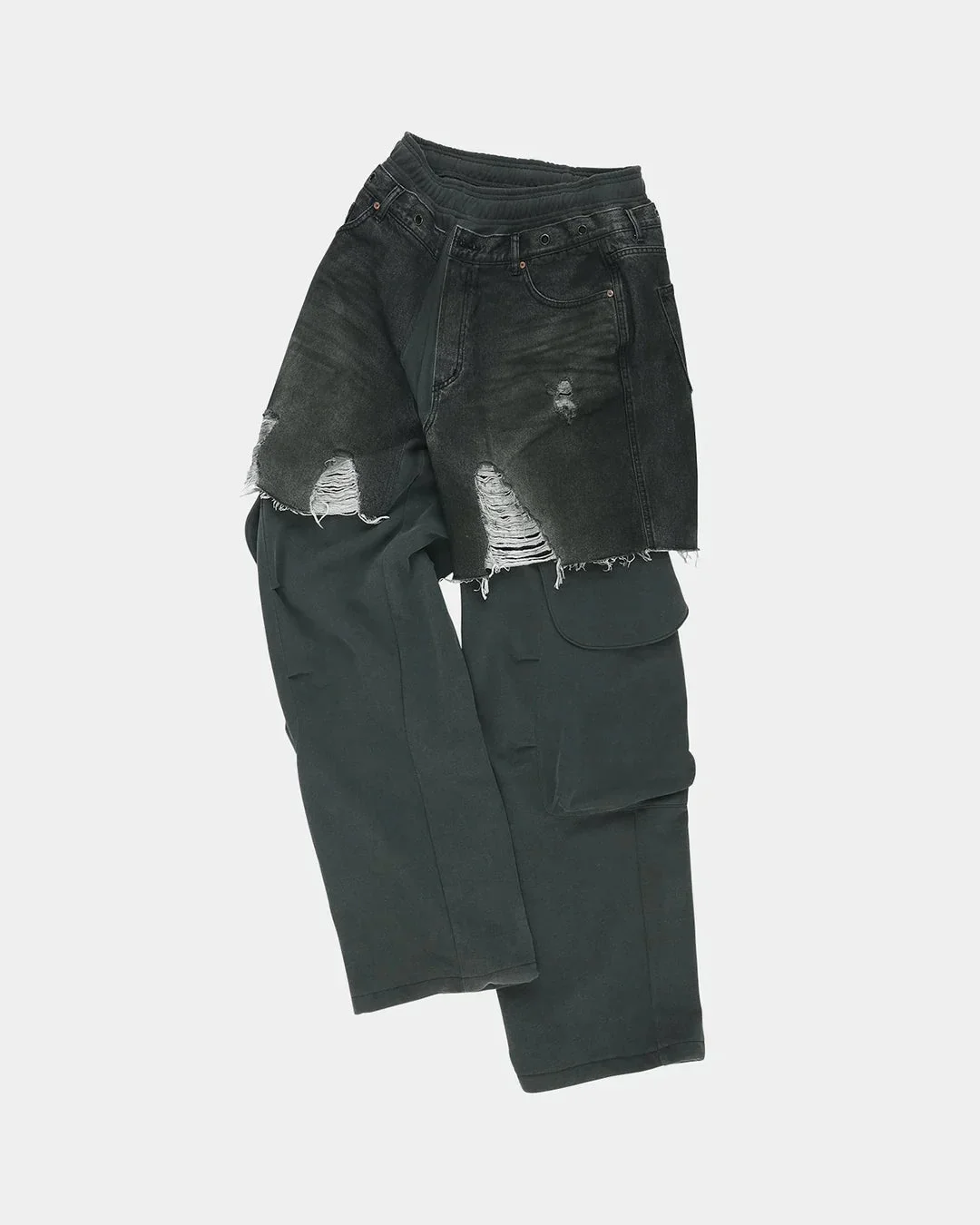Andersson Bell Unisex Rugged Denim-Inset Sweatpants