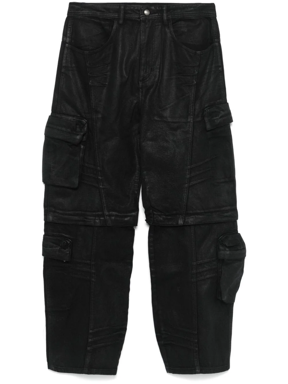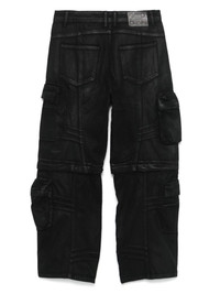 wide-leg cargo jeans Highlights - Black - Cotton - Denim - Front button and zip fastening - Belt loops - Two diagonal pockets to the sides - Multiple cargo pockets - Logo patch to the rear - Two rear patch pockets - Wide leg Imported Composition Cotton 100%