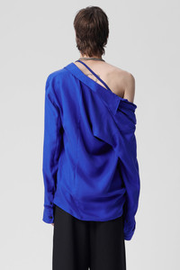 Men's Amatus Dropped Shoulder Shirt - Klein Blue - Peach Silk Twill - Classic Collar - Button Closure - Dropped Shoulders - Long Sleeves - Buttoned Cuffs - Relaxed Fit - 100% Silk - Made In Italy