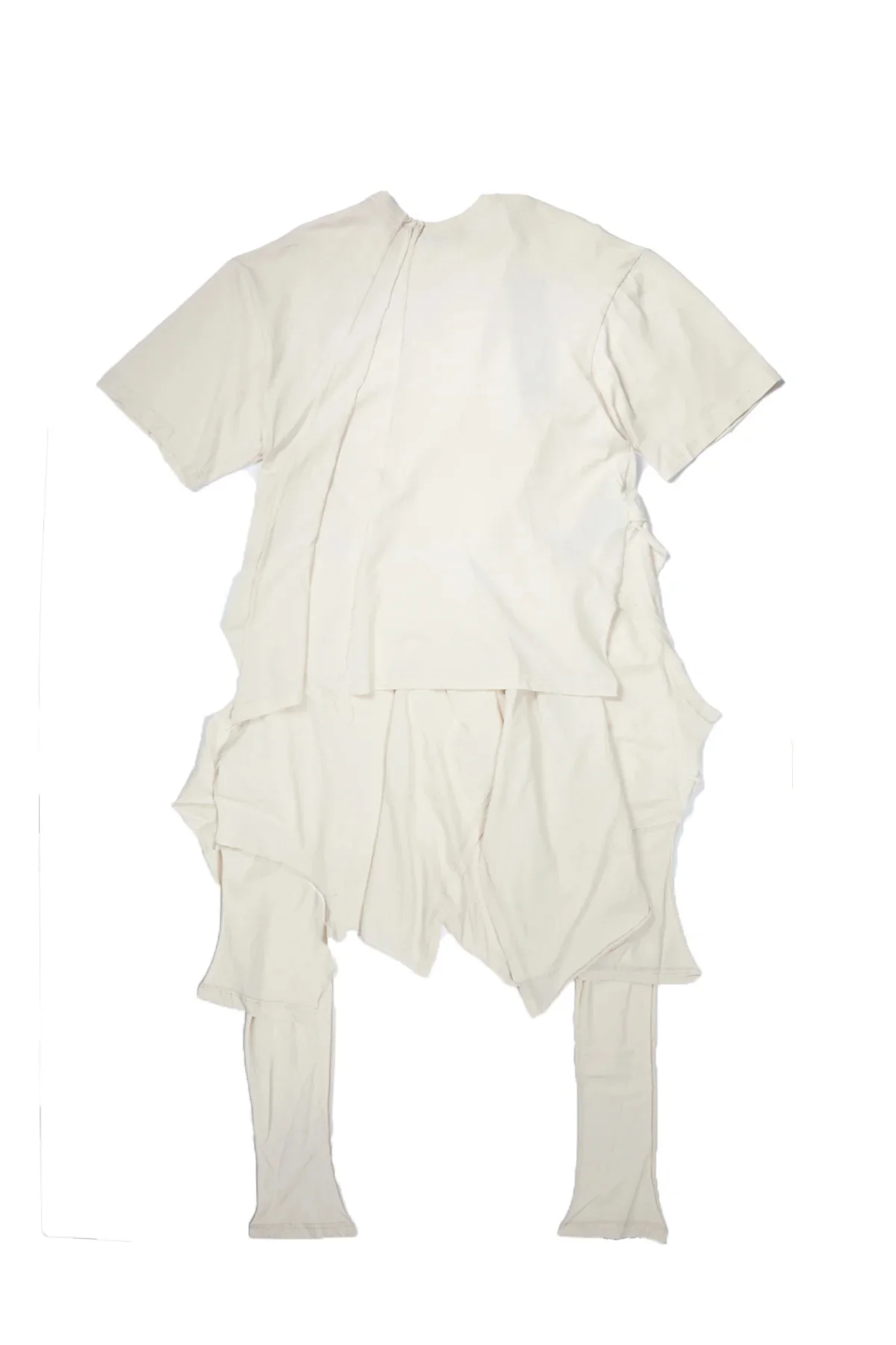 Ann Demeulemeester Seef High Comfort Deconstructed T-Shirt channels high-fashion minimalism through its asymmetric hem and deliberate seam detailing. The understated "Hope" graphic sits against an ivory base, while the relaxed short sleeves and textured fabric create an effortlessly refined silhouette. Side pieces, can be styled how you like. Oversized, relaxed fit. DETAILS Jersey texture Graphic Print on back Asymmetric hems Seam details Material: 100% Cotton Made in Italy Product codes: - SKU: ESSX/ANN/AW25/B0013439FA697003/White/S - UPC: 8059690522608