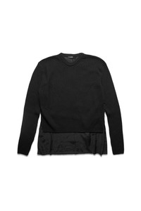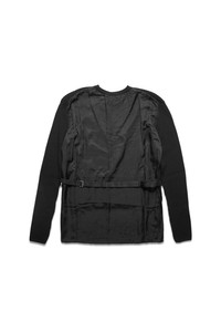 The Ann Demeulemeester Thorvald Darted Sweater featuring a ribbed knit construction with contrasting sateen front layer and back finished with adjustable self-belt strap. This item is final sale and is not eligible for return or exchange. DETAILS - Longsleeve crewneck sweater - Ribbed knit - Contrasting back - Made in Italy Sizing: - True to size Material: 100% WV Product codes: - SKU: ESSX/ANN/2402MKN17KN045099/BLK/S - UPC: 8059690346891