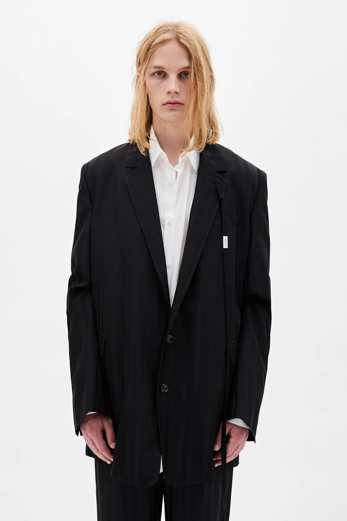 Anthoon High Comfort Tailored Blazer - black - notch lapels - removable signature grosgrain ribbon - button closure - chest pocket - side flap pockets - dropped shoulders - buttoned cuffs - back split - oversized fit - 100% Viscose - Made in Italy Model wears italian size 48 Care To maintain the beauty and integrity of your purchase, we recommend treating it with care. Simple maintenance practices, such as gentle washing and proper storage, can effectively preserve the longevity of your favorites. We encourage you to refer to the care instructions included with each item, designed to help you keep your purchase in top condition. Design Our dedication to excellence extends beyond materials; it encompasses the artistry and craftsmanship illustrated in every piece we create.