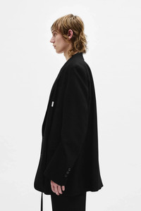 Anthoon High Comfort Tailored Blazer - black - notch lapels - removable signature grosgrain ribbon - button closure - chest pocket - side flap pockets - dropped shoulders - buttoned cuffs - back split - oversized fit - 100% Viscose - Made in Italy Model wears italian size 48 The fit of this item is oversize. If you prefer a narrow fit, consider purchasing this item two sizes down from your usual size. The sleeves of this gament are intetionally long, they can be shortened via internal button. Care To maintain the beauty and integrity of your purchase, we recommend treating it with care. Simple maintenance practices, such as gentle washing and proper storage, can effectively preserve the longevity of your favorites. We encourage you to refer to the care instructions included with each item, designed to help you keep your purchase in top condition. Design Our dedication to excellence extends beyond materials; it encompasses the artistry and craftsmanship illustrated in every piece we create.