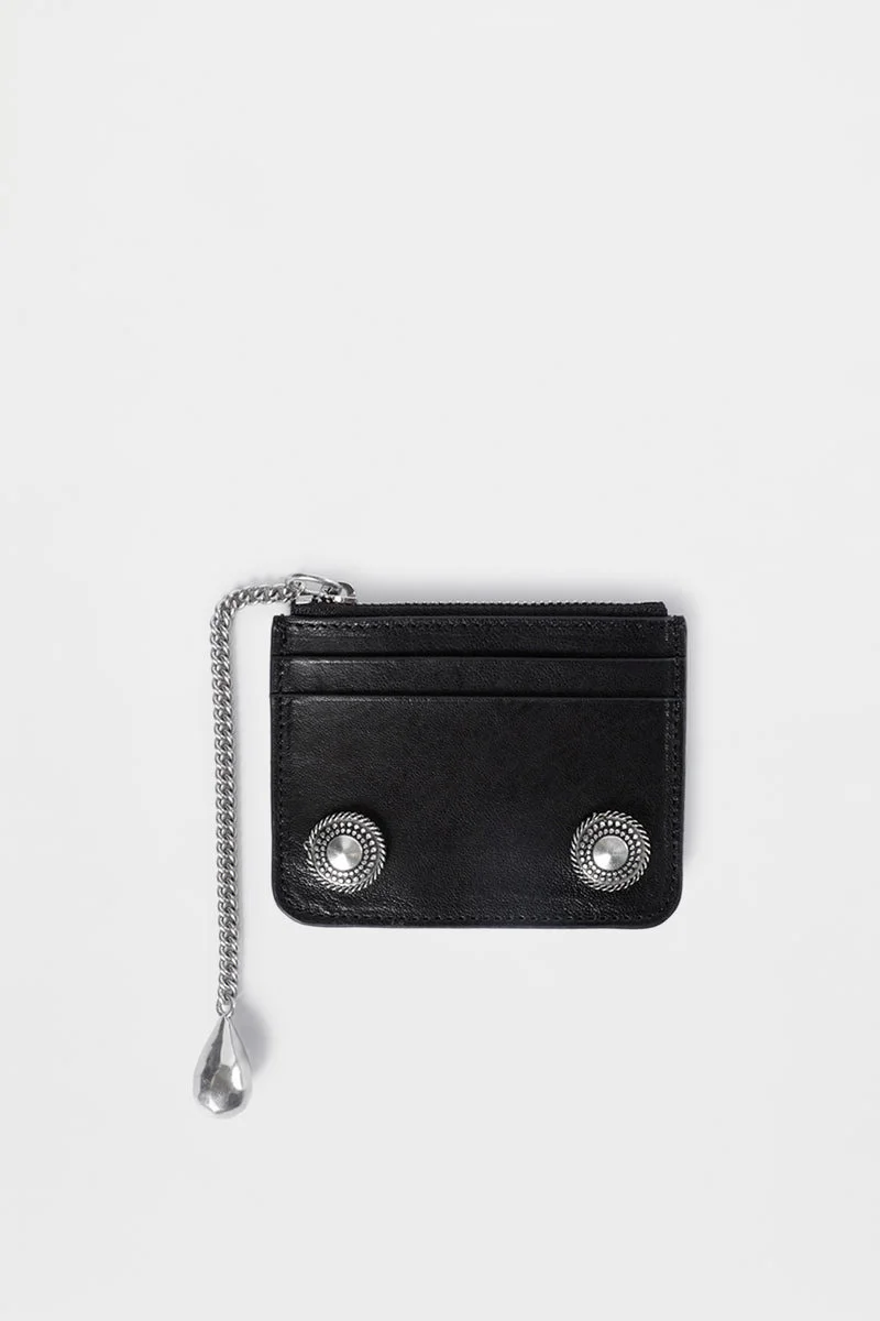 Bep Small Wallet - Black with Studs - 100% Lamb Leather - Made in Italy