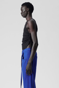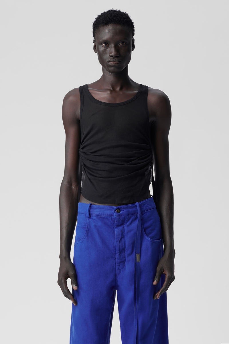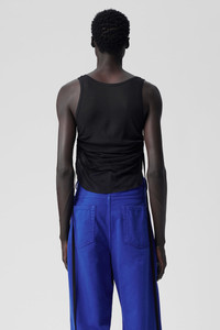 Men's Boris Ruched Tank Top In Light Cotton Rib - Black - Light Cotton Rib - Scoop Neck - Ruched - Cropped Hem - 100% Cotton - Made In Portugal