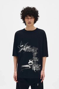 Dieter ''Sketchbook'' High-Comfort T-Shirt - Black - Round Neck - Front And Back ''Sketchbook'' Prints - 100% Cotton - Made in Portugal Model wears italian size M The fit of this item is oversize. If you prefer a narrow fit, consider purchasing this item two sizes down from your usual size Care To maintain the beauty and integrity of your purchase, we recommend treating it with care. Simple maintenance practices, such as gentle washing and proper storage, can effectively preserve the longevity of your favorites. We encourage you to refer to the care instructions included with each item, designed to help you keep your purchase in top condition. Design Our dedication to excellence extends beyond materials; it encompasses the artistry and craftsmanship illustrated in every piece we create.