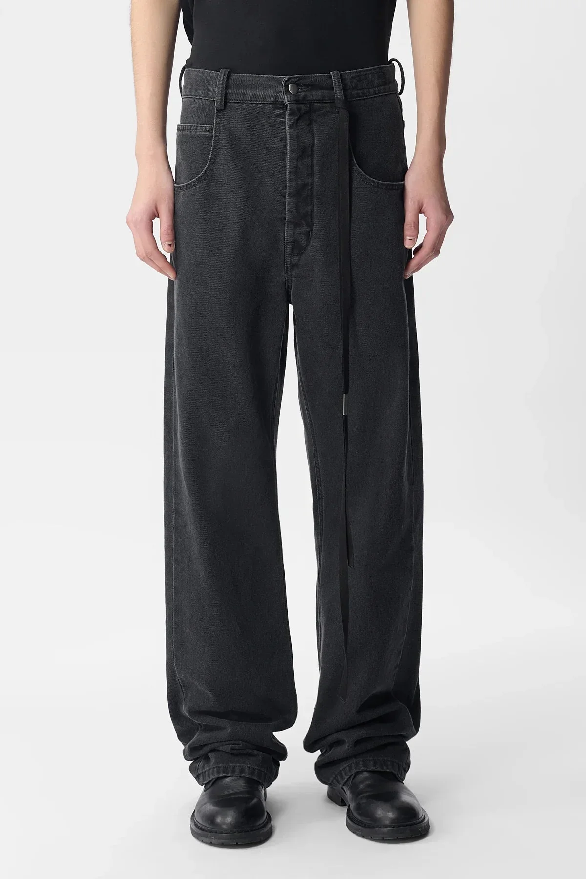 Olan 5 Pocket High-Comfort Jeans - Faded Grey - Washed Denim - Belt Holes - Removable Ribbon With Engraved Logo Plaque - Button Closure - 5 Pockets - Baggy fit The fit of this item is oversize. If you prefer a narrow fit, consider purchasing this item one size down from your usual size. Model wears italian size 46 Height: 186 cm Waist: 68 cm Hips: 88 cm Care To maintain the beauty and integrity of your purchase, we recommend treating it with care. Simple maintenance practices, such as gentle washing and proper storage, can effectively preserve the longevity of your favorites. We encourage you to refer to the care instructions included with each item, designed to help you keep your purchase in top condition. Design Our dedication to excellence extends beyond materials; it encompasses the artistry and craftsmanship illustrated in every piece we create.