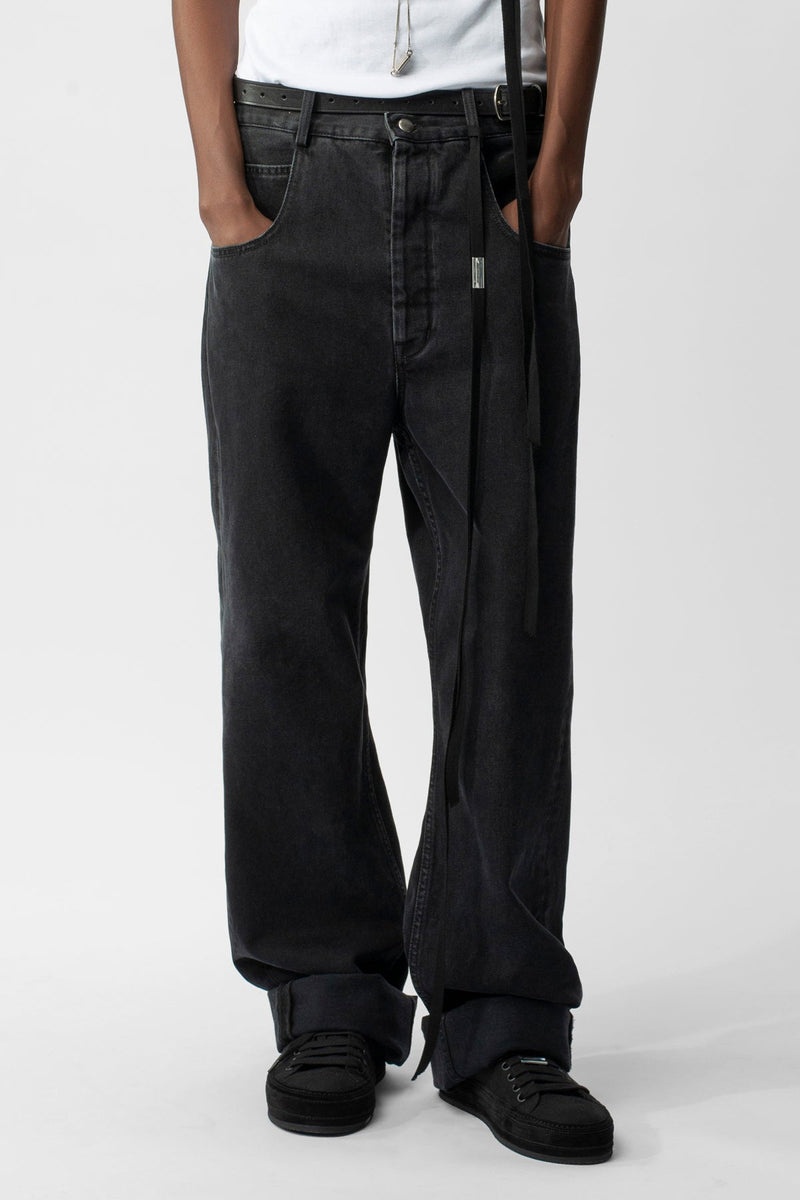 Men's Five Pockets high comfort trousers- Faded Denim Grey- Over Size Fit- Side pockets - Back pockets- 100% Cotton- Made in Italy Model wears Italian size 48 Height: 188 cm Waist: 73 cm Hips: 86 cm
