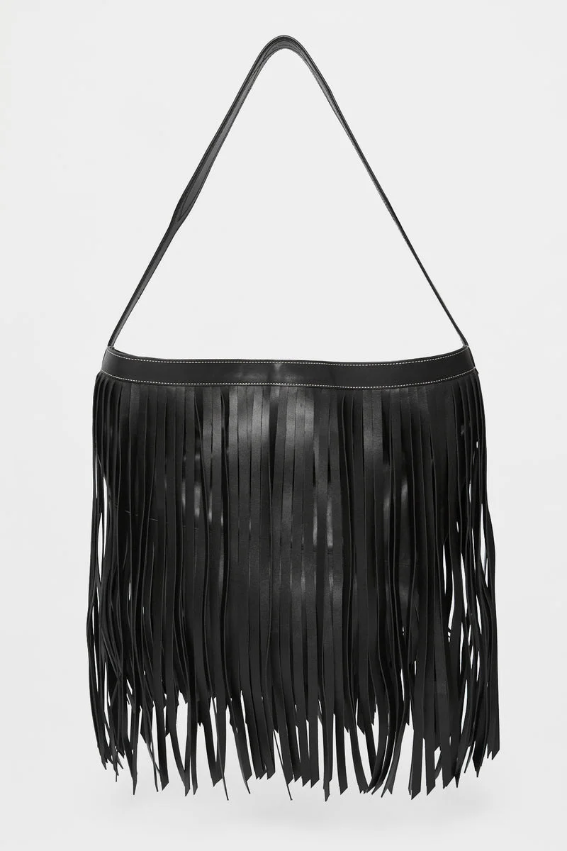 Jeli Fringed Tote With Cowboy Sitched - Black - 100% Calf Leather - Made in Italy Width: 30 cm Depth: 12 cm Height: 30 cm
